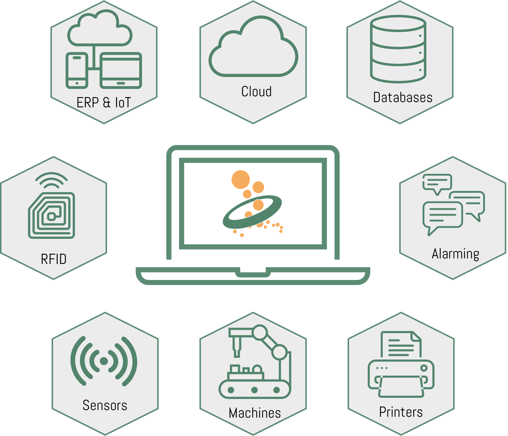 Dzięki wtyczkom OPC Router Plug-ins możesz połączyć ze sobą wiele systemów i aplikacji. Oprogramowanie łączy szeroką gamę systemów OT i IT za pomocą przeciągnij i upuść, od sterowników PLC, kontrolerów, drukarek, systemów RFID i kodów kreskowych po bazy danych, chmury, SAP, a także inne systemy ERP i biurowe. Połączenie tych komponentów systemu odbywa się na graficznym interfejsie użytkownika i sprawia, że wiedza programistyczna jest zbędna.